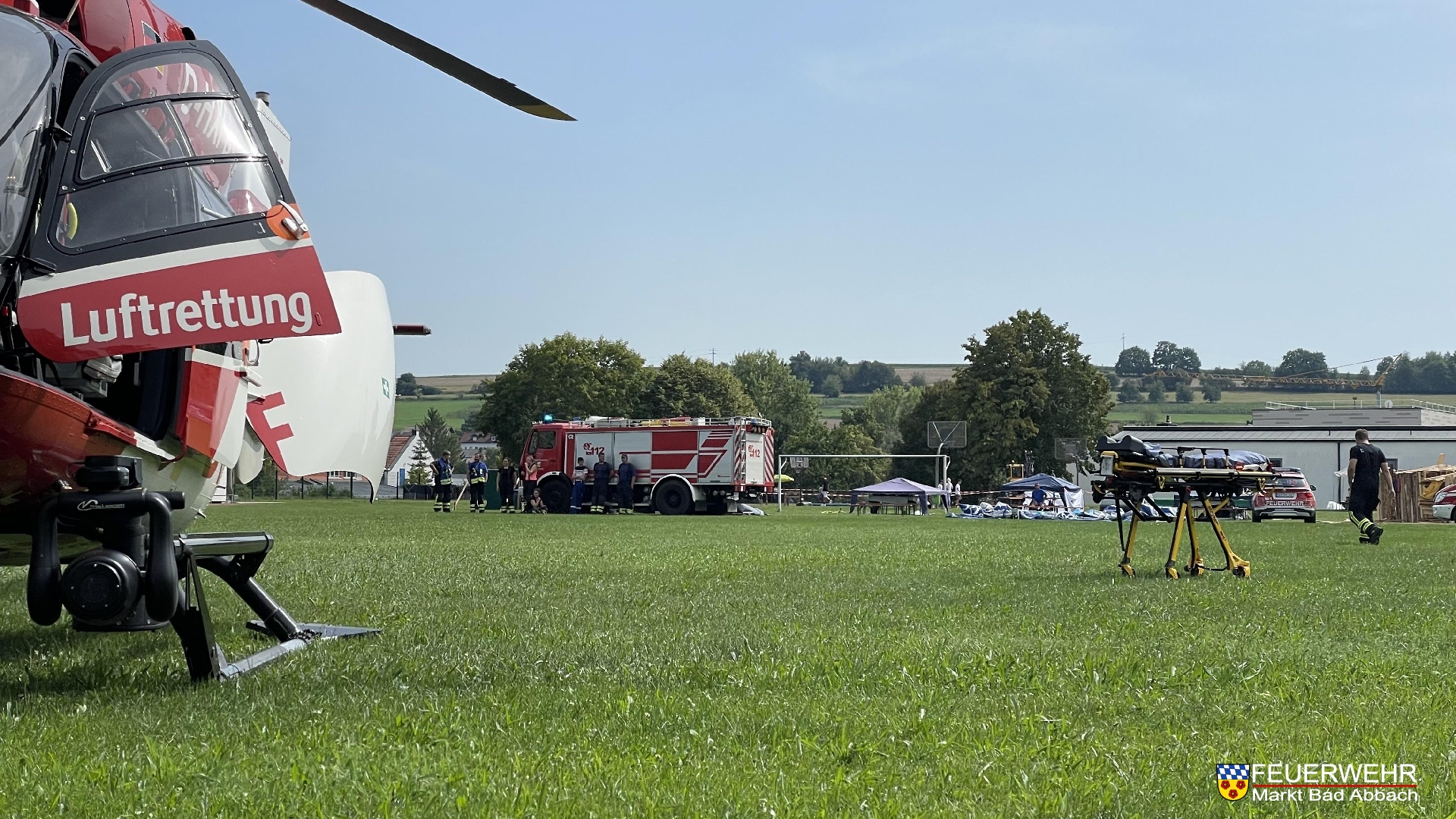 Gegen 14:15 Uhr wurden wir zu einer Absicherung Hubschrauberlandung in den Ortskern alarmiert. Aufgrund eines medizinischen Notfalles musste der Intensivtransporthubschrauber "Christoph München" am Sportplatz landen. Wir übernahmen die Brandschutzsicherungsmaßnahmen bei der Landung sowie beim Start.